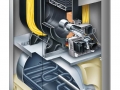 • System JetFlow z inżektorem powrotu zapewnia rozprowadzenie wody powracającej z instalacji na całej długości kotła. Eliminuje to powstawanie skroplin na powierzchni grzewczej i zapobiega pęknięciom naprężeniowym.